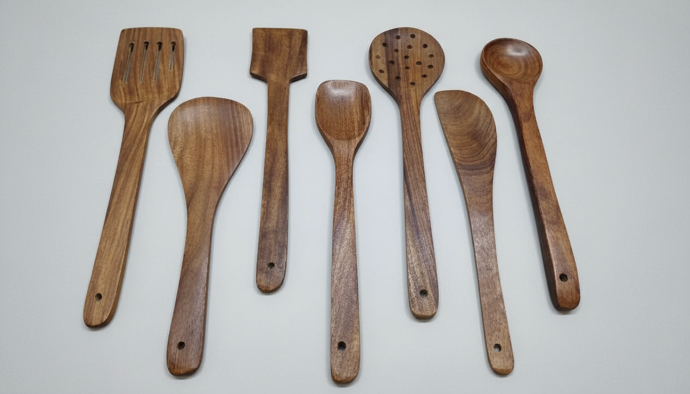 Upgrade your kitchen with this Handcrafted 7-Piece Sheesham Wood Kitchen Utensil Set — a complete collection of cooking tools designed for Indian kitchens. Each utensil is carved from premium Sheesham Wood (Indian Rosewood) and finished to perfection by traditional artisans.