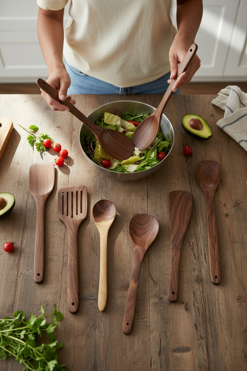 Made from 100% natural wood, the utensils are heat-resistant, eco-friendly, non-stick safe and gentle on cookware. The smooth ergonomic handles offer excellent grip and effortless cooking.