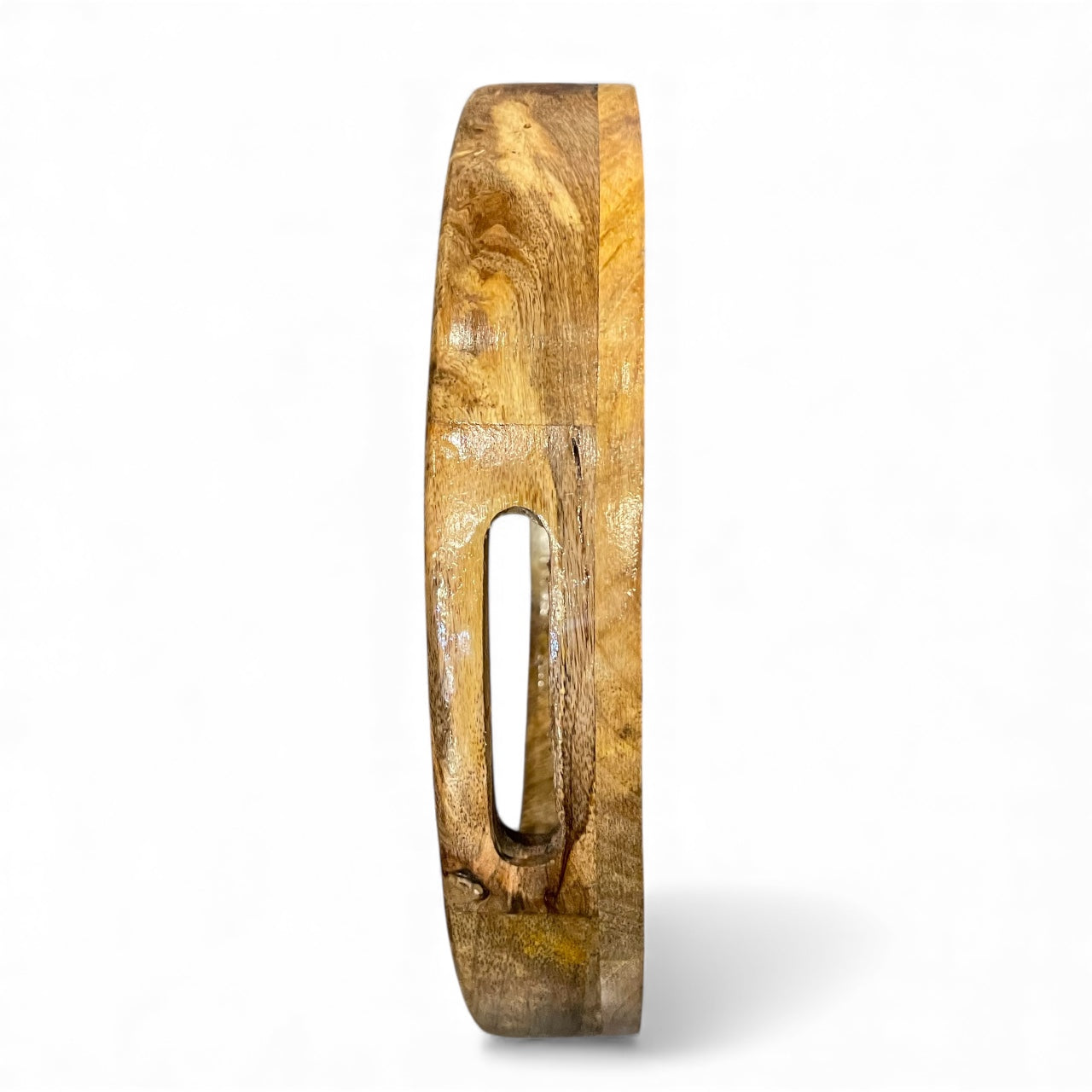 Carved from 100% solid Sheesham Wood (Indian Rosewood), this serving tray features a smooth rounded base and strong integrated side handles for easy lifting and serving. The rich natural grains make every piece unique, turning daily serving into a luxury experience.